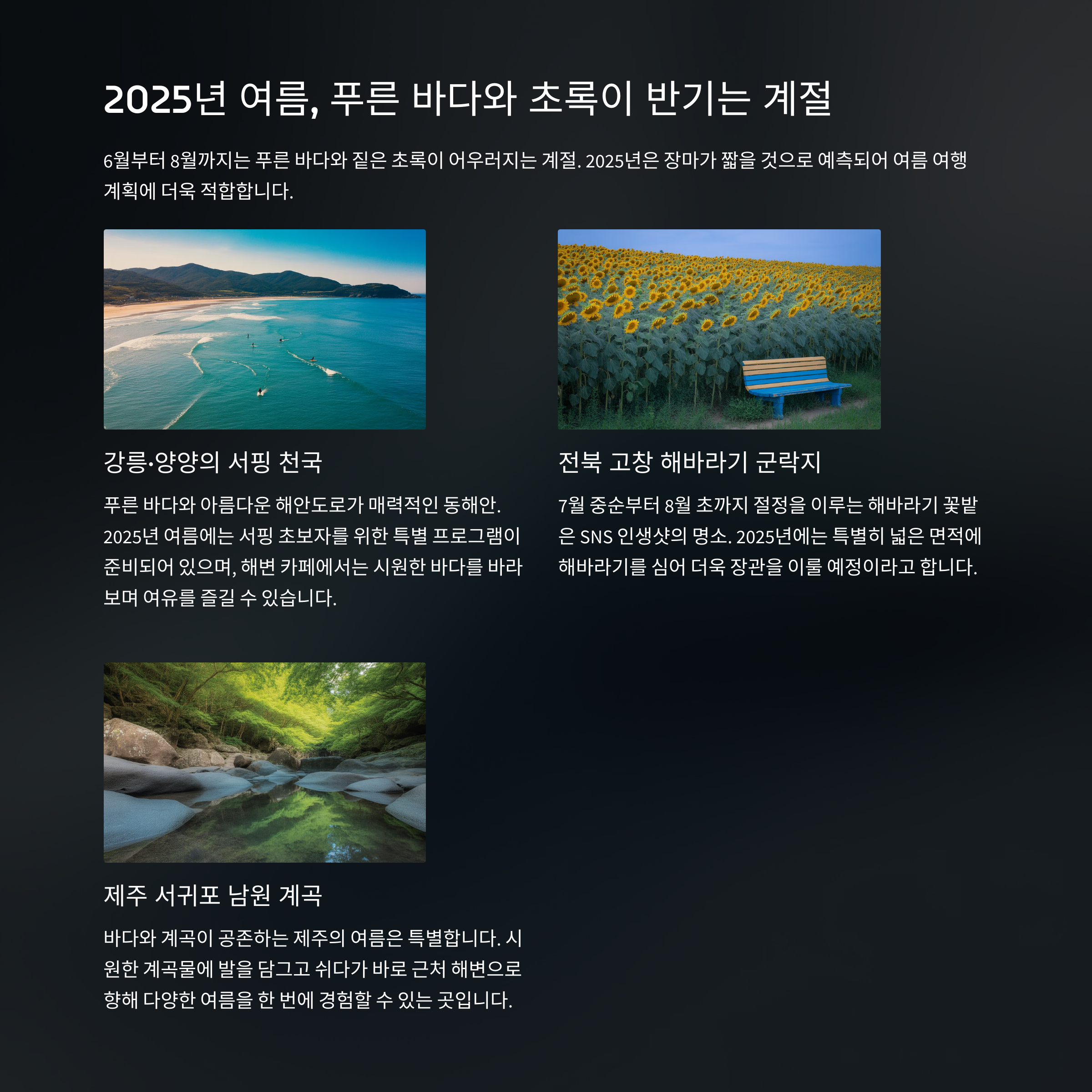2025년 여름 – 6월부터 8월까지, 바다와 초록이 살아 숨 쉬는 계절