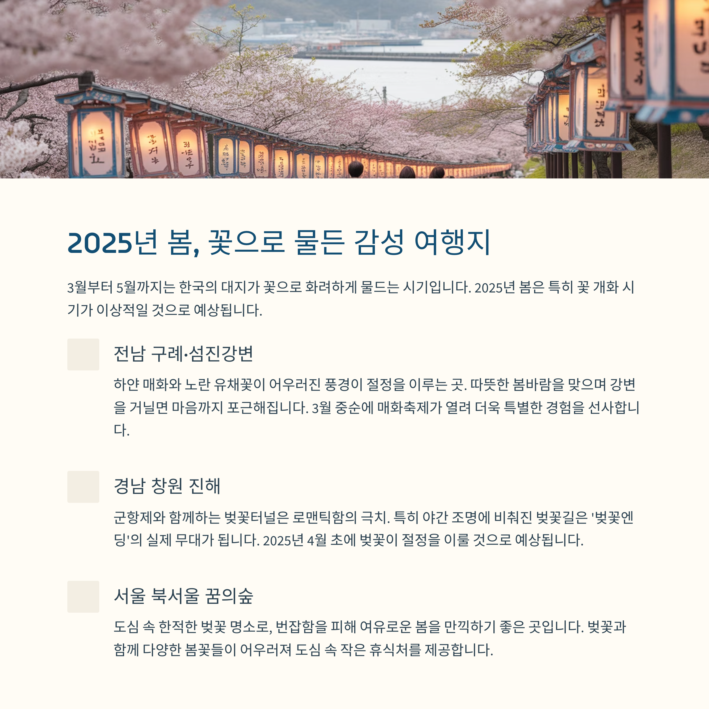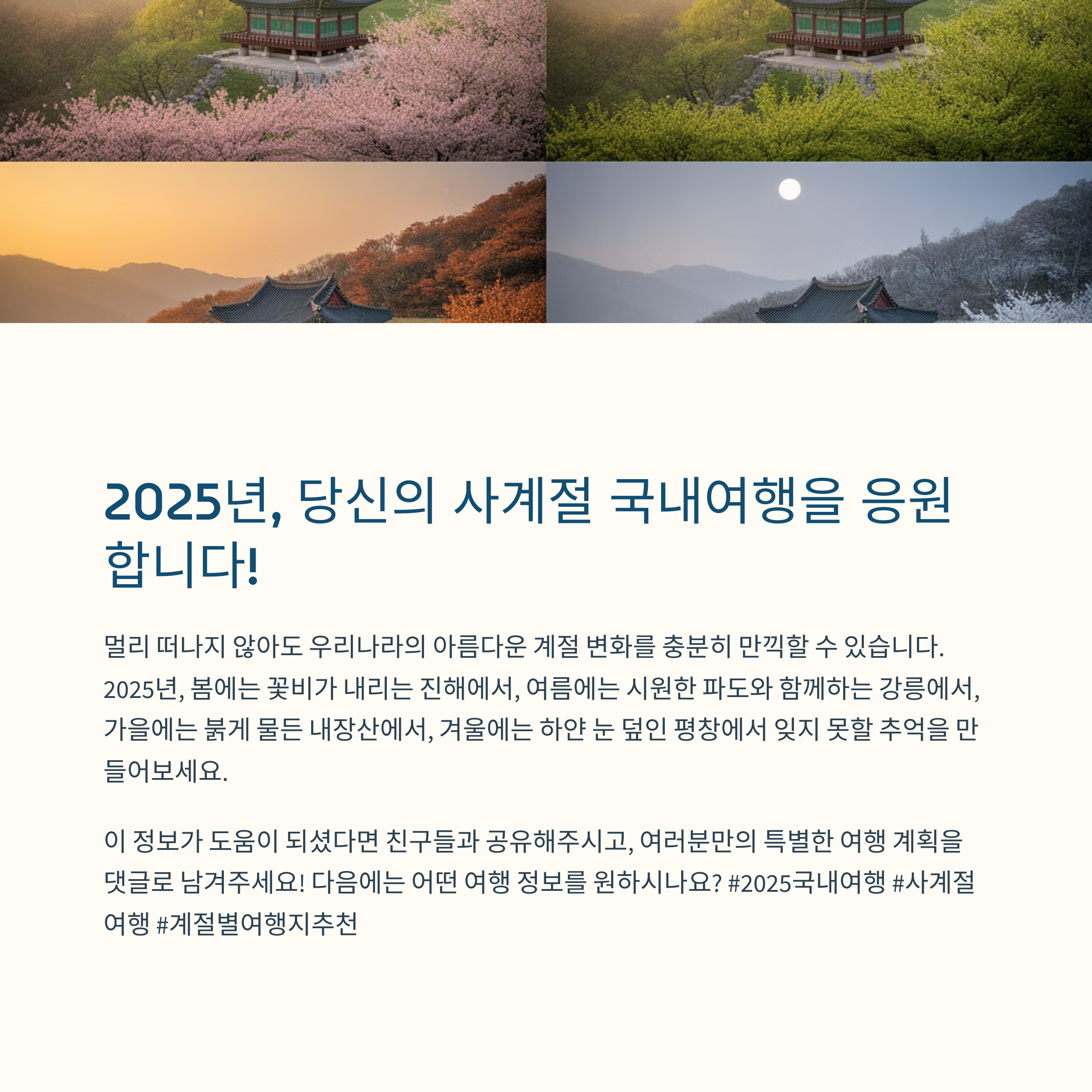 이 글에서는 2025년 사계절에 맞춰 자연, 풍경, 분위기, 축제까지